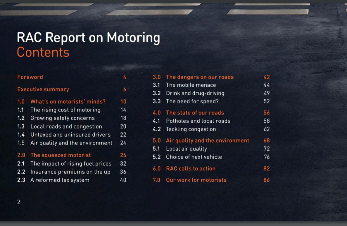 The RAC has released the results of their annual driver’s survey. They highlight the fact that 38 million people in the UK are drivers and therefore they represent a large voting sector who’s views should be important to the government. They took a sample of 1,700 representative drivers to assess their experiences, concerns and perceptions.